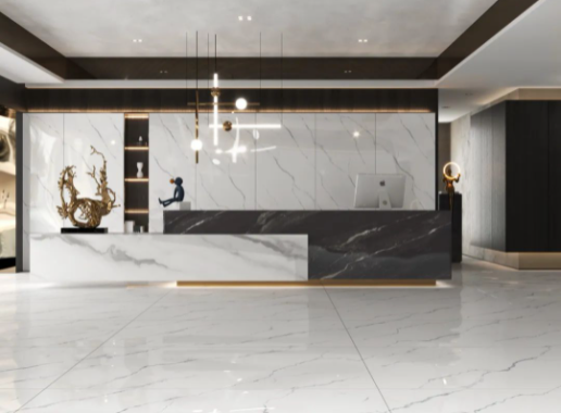 刪繁就簡的初晨白紋理,自然靈動,多面多紋的完美復(fù)刻,猶如大自然的神來之筆,極簡主義的裝飾空間,仿佛大雪下的視覺盛宴,高雅、恬靜、舒適之感彰顯無遺。