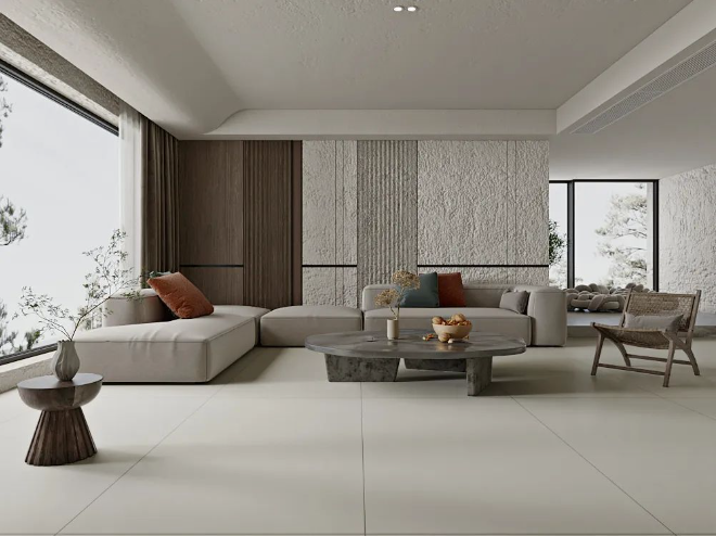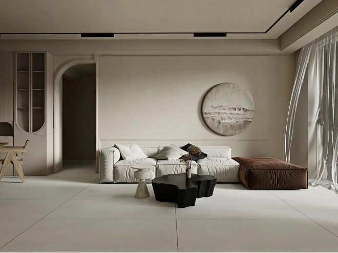 750x1500mm的大規(guī)格,三個(gè)不同釉面(保護(hù)精雕釉、保護(hù)釉、超細(xì)干粒)打造不同質(zhì)感。在溫潤(rùn)的肌理之上,傳遞出干凈有格調(diào)的極簡(jiǎn)美學(xué)質(zhì)感。