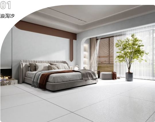 地面選用750x1500mm黃金規(guī)格的浪淘沙進(jìn)行通鋪,簡(jiǎn)潔的線條設(shè)計(jì)與不同材質(zhì)交匯融合。不僅讓空間更具擴(kuò)張力和延展力,清新淡雅的綠植作為點(diǎn)綴,猶如置身大自然,仿佛呼吸中亦有抵達(dá)心底的治愈。