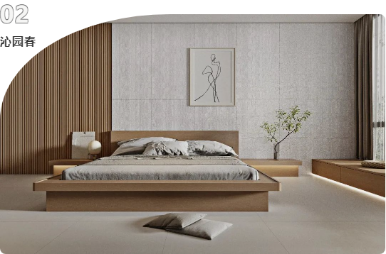 床與飄窗間插上清新插枝,舒適的氣息在進(jìn)門剎那便撲面而來。原木色系帶來的溫暖氛圍,結(jié)合宋素|凡古磚精雕工藝帶來的細(xì)膩肌理,原生態(tài)的質(zhì)感,呈現(xiàn)出一個(gè)素凈的雅居空間。