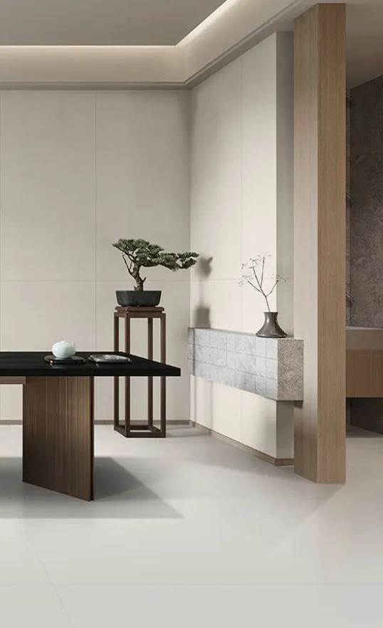 如同回歸大自然清新脫俗的木紋縱橫交錯(cuò),搭配宋素|凡古磚肌膚釉工藝自帶的8°柔光,在方寸之間展現(xiàn)簡潔、大方,暖灰色系結(jié)合恣意流暢的紋理,在光線渲染下,如朦朧月色裝飾空間,深邃而又浩渺,讓家中再現(xiàn)溫馨回憶。