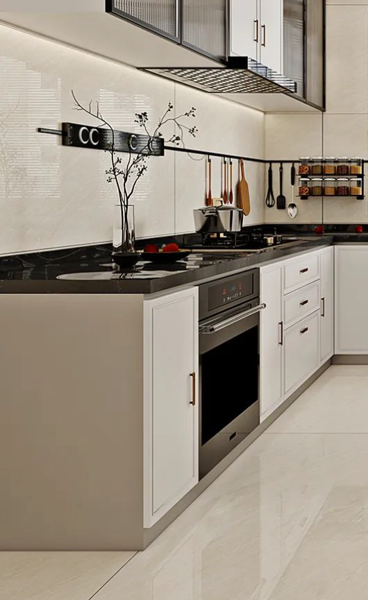 廚房以瑞金米黃進(jìn)行通鋪,如同秋日暖陽(yáng),悄然無(wú)聲潛入室內(nèi),雖不是特別熾熱,但卻溫暖有力量。