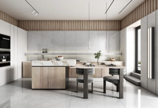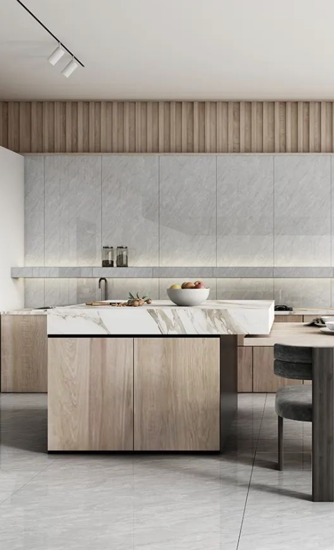 可通過木紋元素結(jié)合樓蘭灰靈動的紋理