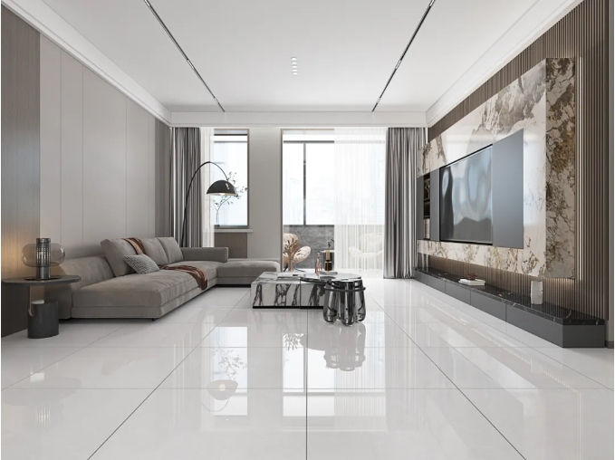 550g更厚釉量,經(jīng)過拋光特殊模塊加工,有效避免瓷面水波紋、R角、輥棒印,當(dāng)指尖劃過磚面,觸感如凝脂般均勻細(xì)膩,讓人沉醉其中,流連于平整美學(xué)間。