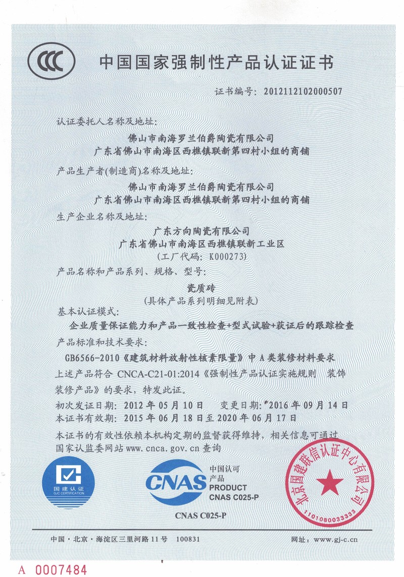 方向CCC認(rèn)證證書