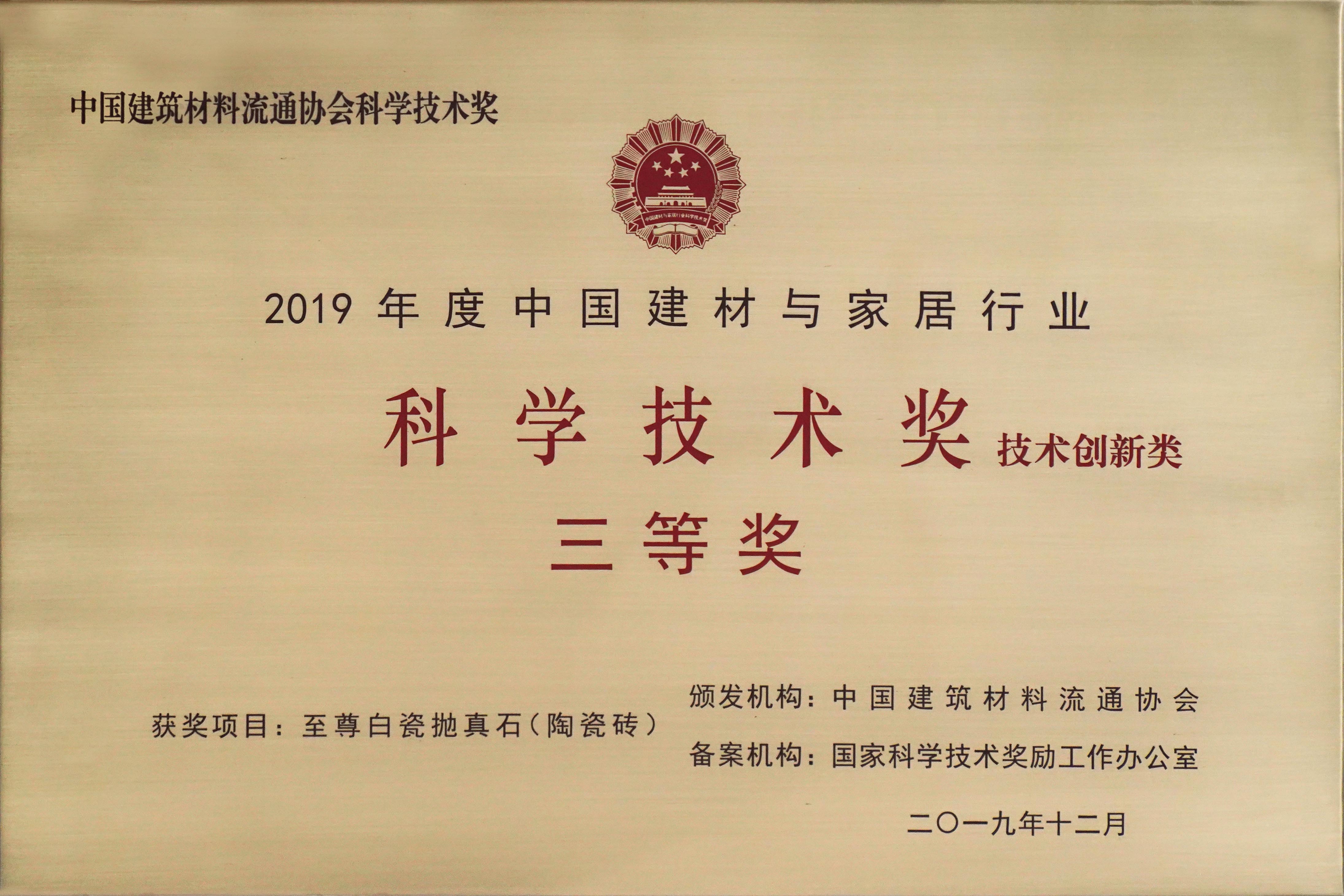 2019年度中國建材與家居行業(yè)科學(xué)技術(shù)獎(jiǎng)